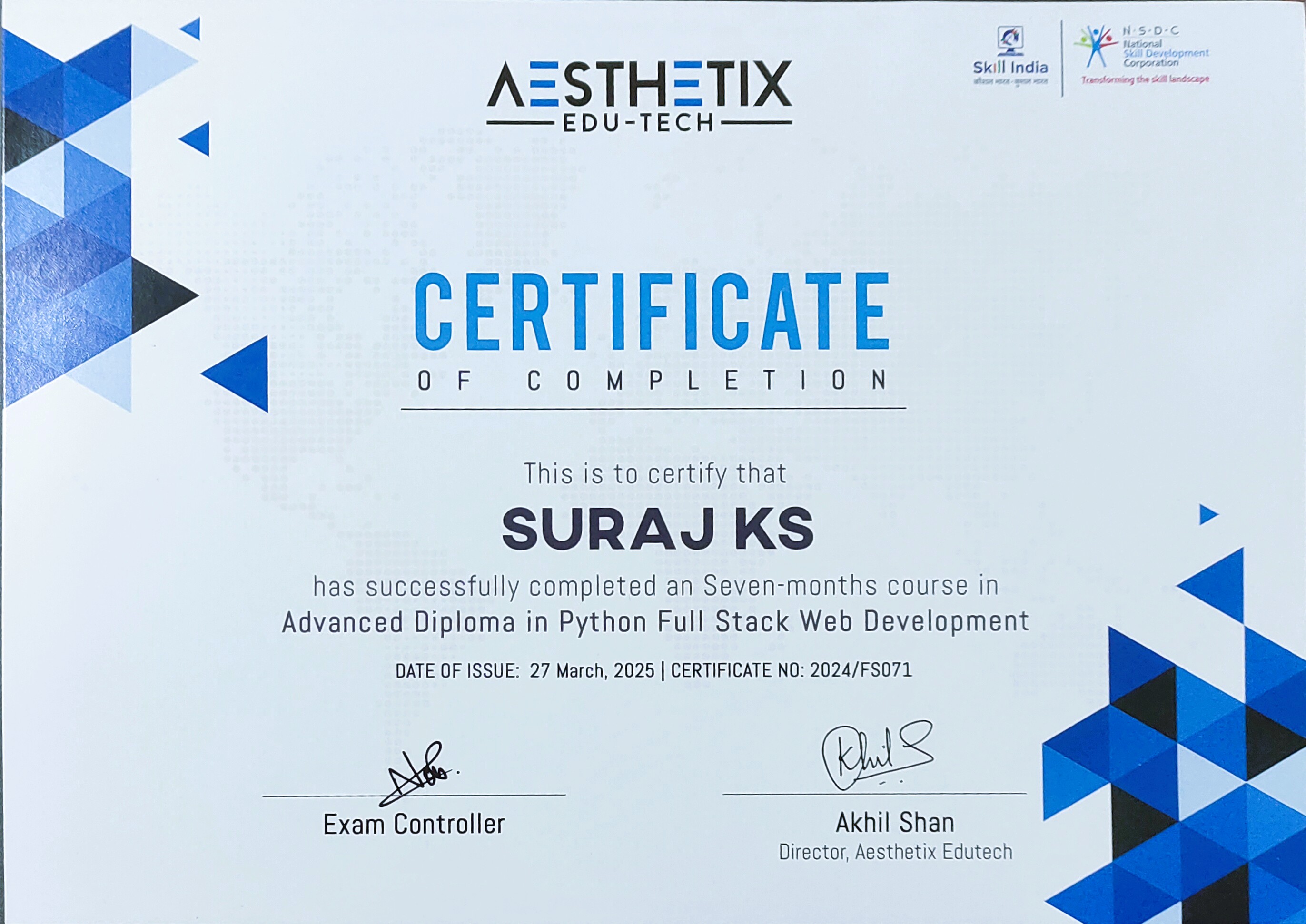 Certified Web Developer program by IIB Education and NSDC, focusing on professional industry standards and practices.